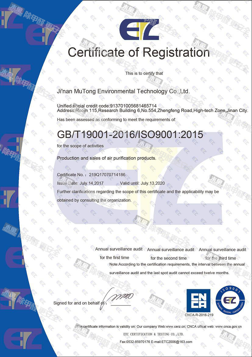 ISO9001質量管理體系認證(GB/T19001-2016)