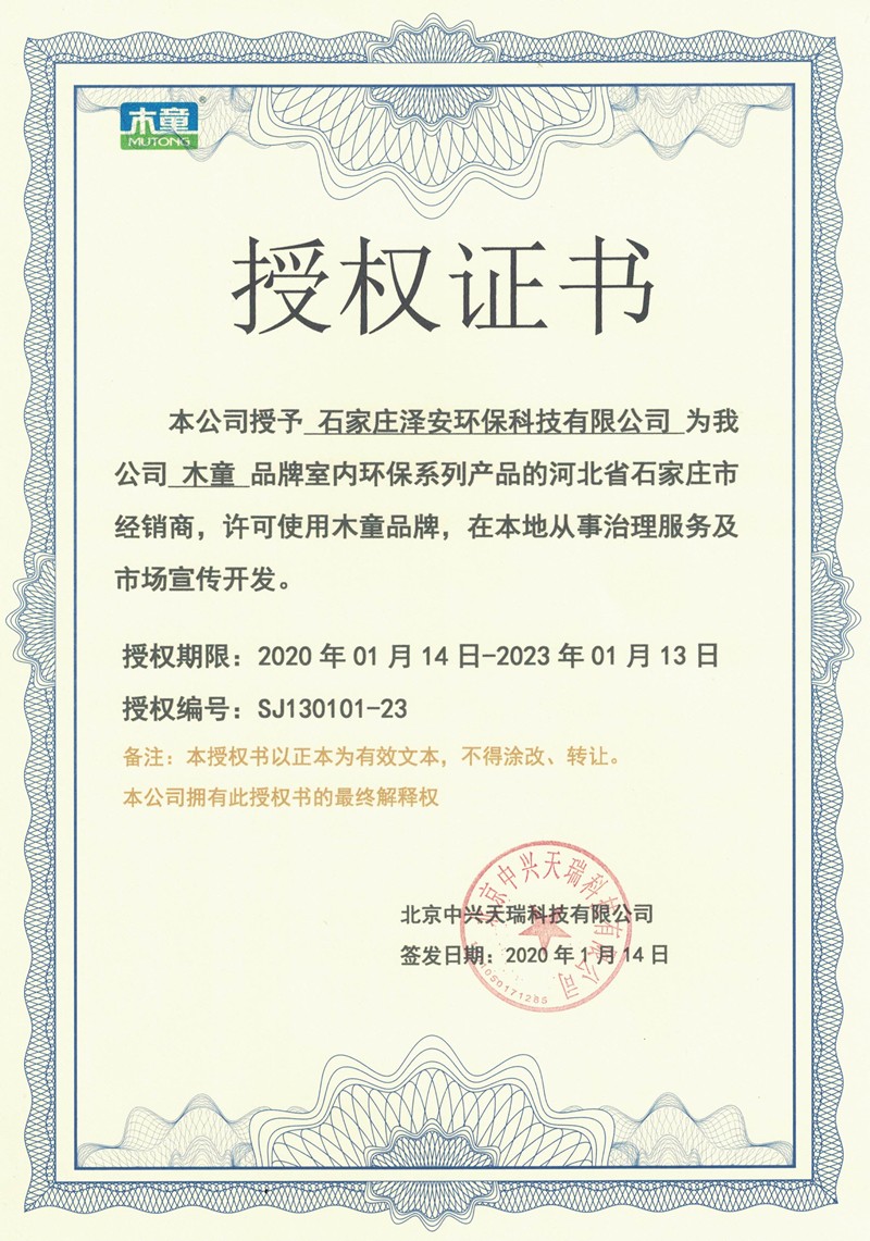 ?石家莊澤安環保科技有限公司是“木童”除甲醛品牌室內空氣治理產品總部在河北省石家莊市設立的運營服務中心,木童除甲醛石家莊全地域一級服務商,石家莊市專業除甲醛公司。專業從事室內空氣污染系統防治,室內除甲醛,綠色環保裝修服務,室內裝修污染治理工程服務,治理技術工藝培訓的科技服務型企業,竭誠打造石家莊最專業的室內空氣凈化治理服務企業。